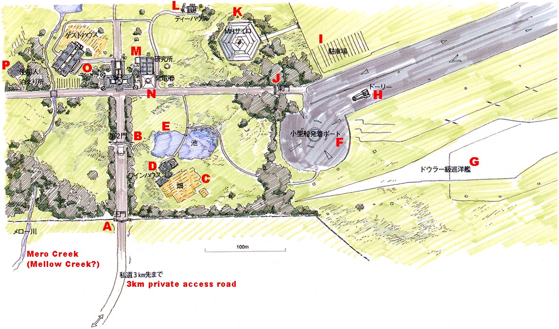 Here is the main part of the vast Ballanche Castle grounds. Half has been reserved for an aircraft docking area to accommodate the headdliners and royalty that flew in frequently. Lachesis and her sisters used to play on the hill behind the castle proper. There is a teahouse and small lodgings up there, quite extravagant for someone who lives alone. "What do you mean 'extravagant'?" would no doubt be the reply from this scion of the great Balance family, no doubt thinking that he was actually "roughing it" out here in Trun. Typical for someone who enjoys hanging around with the likes of Ladios Sop! Incidentally, it is over 3 kilometers from the castle entryway to the end of the private access road.