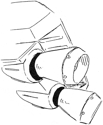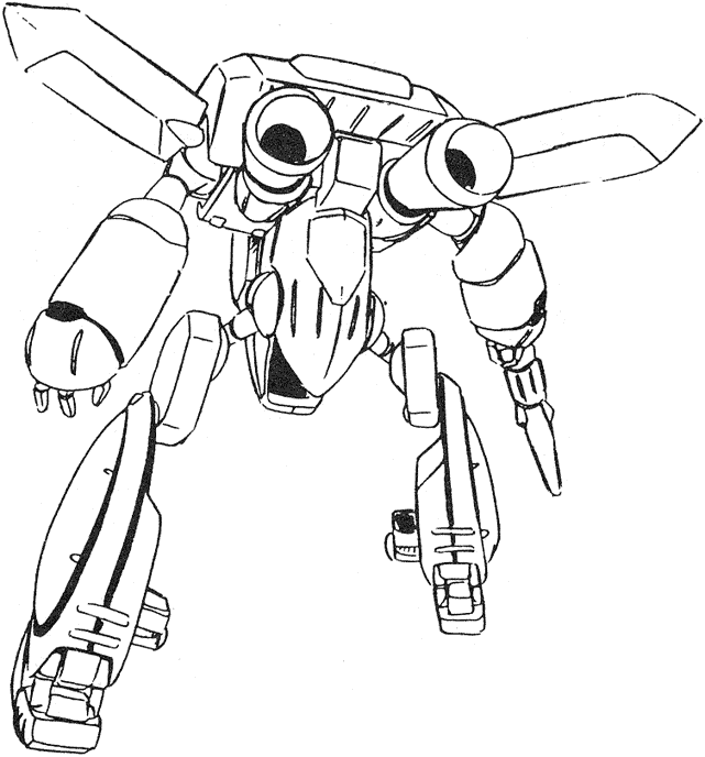 The Jet Blowgun is a hoverbike that can transform into a humanoid mode better equipped for combat. Several are stored aboard the Blossom and used on Chaos. The large, triple-barrel laser gun can be used in both modes.