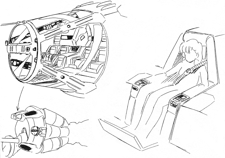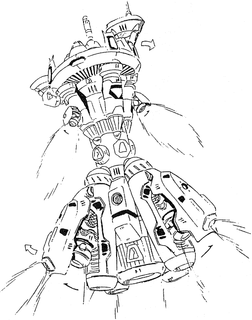 The Blossom is a mobile landing base designed to establish a Solnoid presence on a planet. Measuring 80 meters tall, it contains a wide array of equipment for creating a defensive perimeter and surveying an area. It seems to be designed for use by a crew of 4. Among the vehicles stored and maintained onboard are Jet Blowguns, 2 Breaker fighter craft, a hovercraft and a transporter. An escape pod is built into the top of the Blossom if the crew should need to suddenly abandon their position.