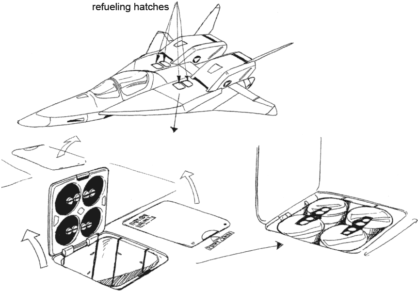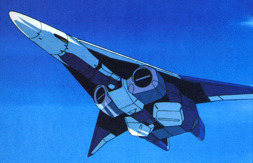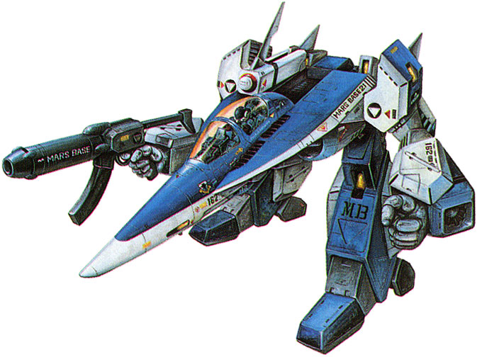 As the Mars military’s plan to descend on Earth is a futuristic "Normandy", let’s put invasion stripes on everyone involved! ...was my suggestion, but the lack of military interest on the scene left it underappreciated. Still, I managed to get them on the main fighter. (As for other SF mecha with black and white stripes, I managed to push them onto the later "Gall Force" OVA. And I will continue to do so! Such tenacity...)