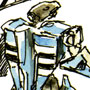 The mass produced model, the AFC-01I Iota, is typical of the Legioss’ form, specifications and performance. Two variants of the Legioss, also designated by letters from the Greek alphabet, are seen in Genesis Climber Mospeada. The Eta is designed for squad leaders while the Zeta is a high performance variant. Each Legioss contains one Armor-Bike in the chest that the pilot can use in emergency situations. The Eta is manufactured at Mars Base. Because the Eta is designed to be a commander’s machine it has a better computer system than other Legioss.