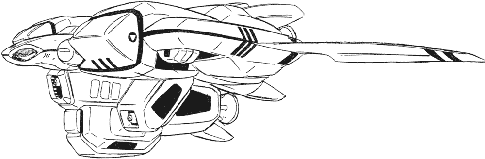 The "Dread" name for this Tread prototype is from Dreadnought. A block of propellant and engines to carry a Legioss from Mars to the Earth sphere... is what I was going for. Below is the first sketch drawn around 1983. I designed it in the style of the Nostromo from Alien but the director said it "doesn’t look like a flying mecha without wings!" so it was rejected. An unmanned mecha. It even transforms!