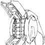 Heat Horn (mounted on forehead), Triple Barreled Automatic Machine Cannon (mounted on left arm), Revolver Stake (mounted on right arm, cylinder fed (6 rounds)), Square Claymore x2 (mounted on shoulders)