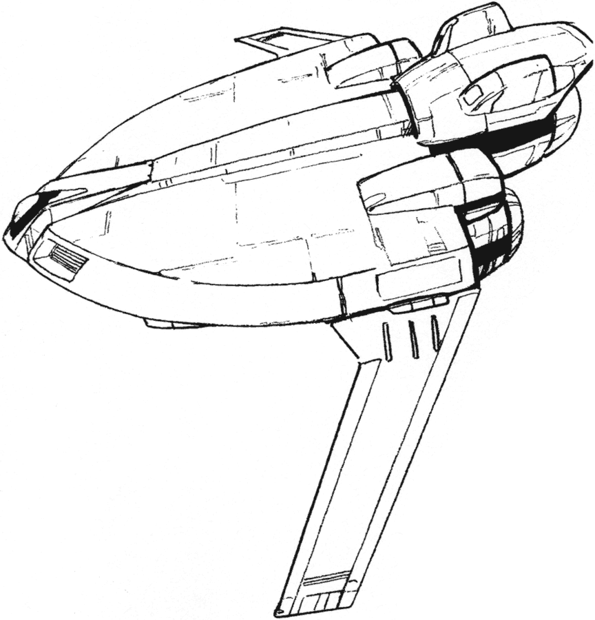 The first Lovely Angel appeared in the Dirty Pair TV series. The entire ship is bright pink (we’re never told if Kei and Yuri are to blame for this). The ship is well armed with four missile launchers on the underside and a large beam cannon attached to the bottom. The ship is able to serve as a home away from home for long journeys. Not only does it have a cargo hold but also a living room, locker room and kitchen. The living room converts to a bedroom with two separate beds.