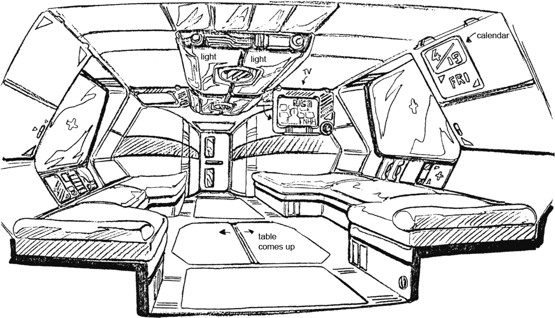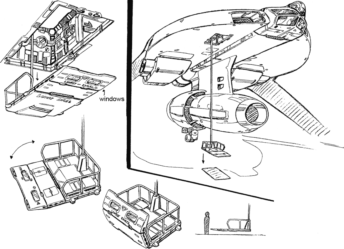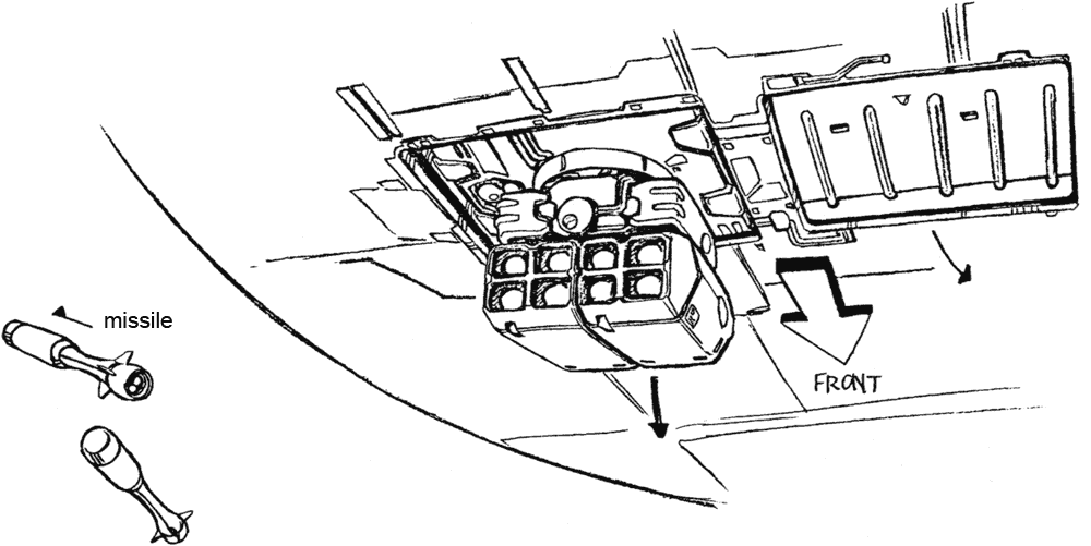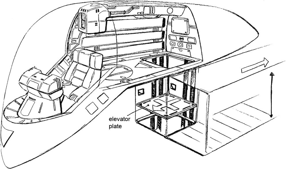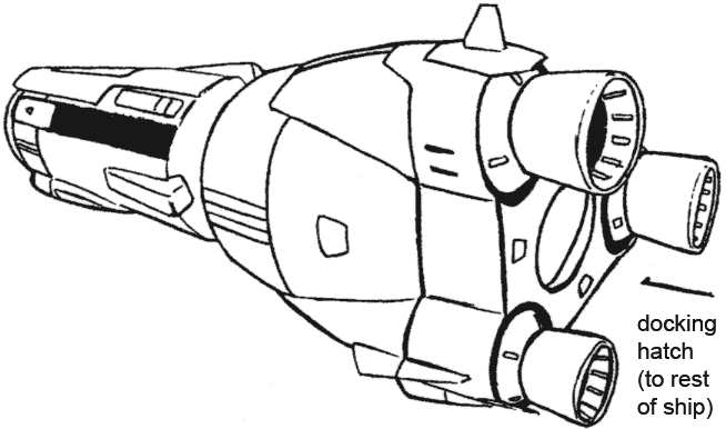One of the truly interesting features of the first Lovely Angel is the separate craft it contains. The front of the Lovely Angel hinges up to allow a small spaceship called the Cockpit Capsule to emerge. The Cockpit Capsule has a beam cannon and can serve as an escape pod or boarding craft. The Dirty Pair have surprised adversaries who weren’t expecting such a small ship to have a hidden boarding craft. The Lovely Angel’s main cockpit is inside the Cockpit Capsule but a crane arm can remove one of the pilot seats and move it up to the secondary cockpit before separation.