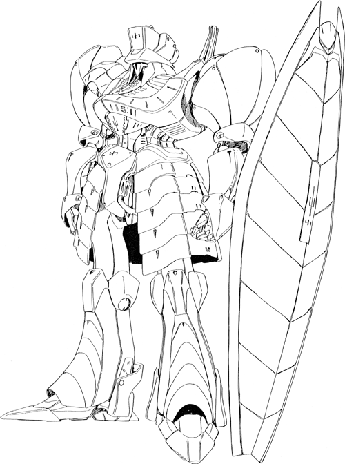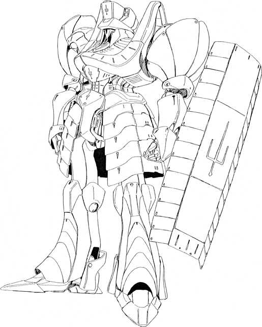The Berlin is the mainstay of the Trio De Colus forces. There are two different models, the Green Berlin, which is the MH used by the standard Colus Knight Corps, and the White-Violet Berlin, which is reserved for the Trio Temple Knights (the palace guard). Though the two models differ in color and armor design (slightly), they are mechanically the same. The Berlin will be re-designed by Dr. Diamond Neutral in the early 3000's and used in the Majestic Stand conflict. The original Berlin was designed by Rowmiran Xbin (pronounced "Crossbin"), who was the designer behind the legendary Vatshu. Much of the technology pioneered with Vatshu went into the Berlin fleet.