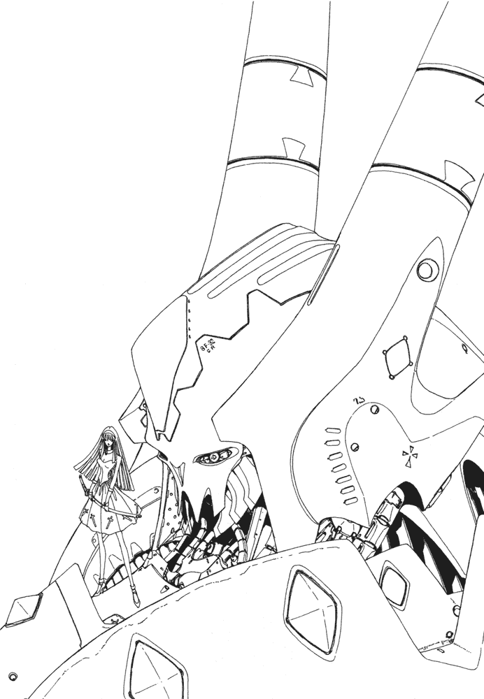 The White Phantom is piloted by Blanche Knight, Naias Brunehilde of the Kneu Syltiss White Group. The Scarlet Phantom by former Kensei, Ena dai gu Fillmore, the grandmother of the Fillmore Emperor. Finally, the Black Phantom is piloted by Madora Morai, daughter of Orricon Harris and Green Left Mirage Knight.