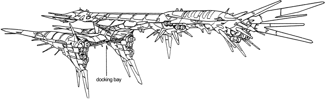The Lorilei is a large battleship where the characters of Destruction are assigned. At 2.2 kilometers in length it is a large ship.