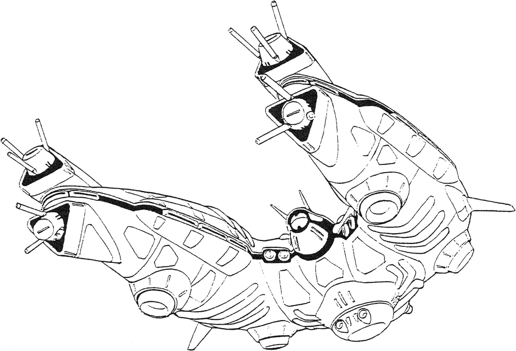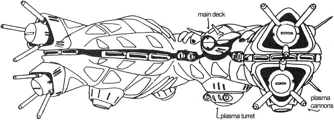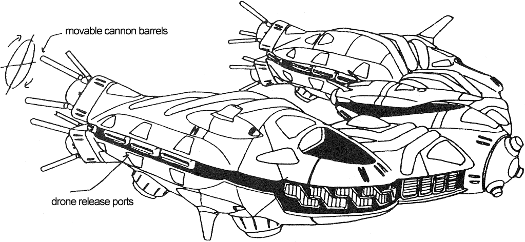 The Volcano is a mid-size class battleship (200 meters long) and usually found in large numbers in Paranoid fleets. They are equipped with long-range missiles and plasma cannons and carry battle drones.