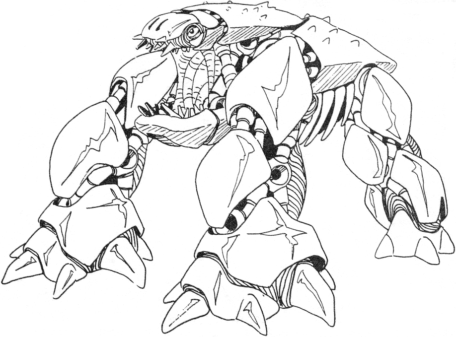 The Dinosaut is a massive walking mech bristling with weapons. It is contained inside the Damoth and released as a last resort. The Damoth has to completely fall apart in order to release the Dinosaut. The Dinosaut is directly controlled by Commander Dohn.