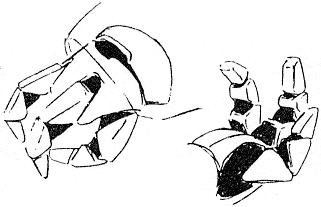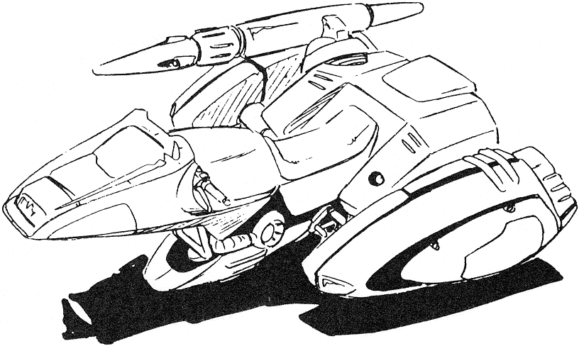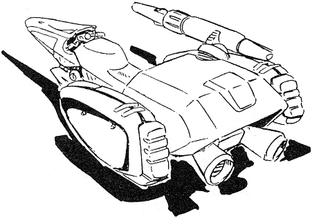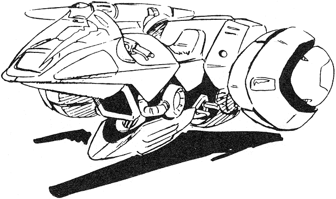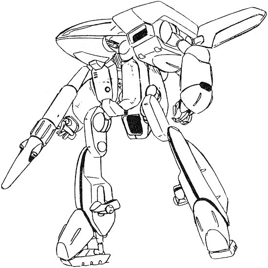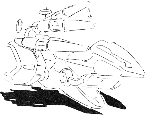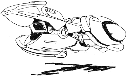 The Jet Blowgun is a hoverbike that can transform into a humanoid mode better equipped for combat. Several are stored aboard the Blossom and used on Chaos. The large, triple-barrel laser gun can be used in both modes.