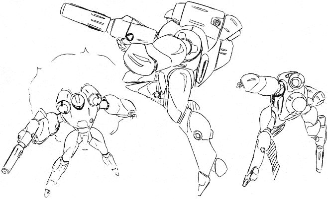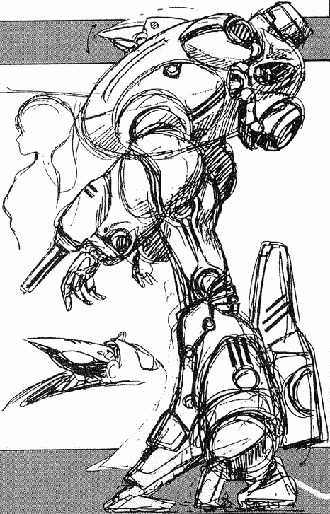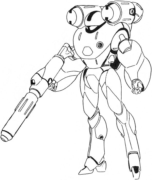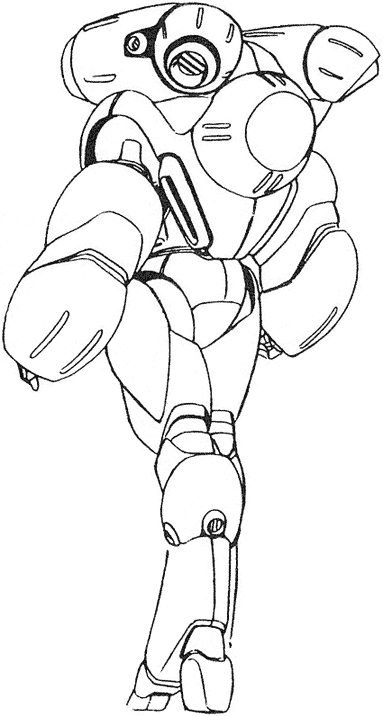 Struggle Suits are powered armor suits with thrusters for flight in space. They are used in a variety of defensive roles. Due to their small size and limited range they are not used as frontline fighters in battle. Sometimes they are stored in the cockpits of fighter craft for pilots who have to bail out, giving them better chances for survival. Stuggle Suits are also used to defend battleships from Paranoid intruders. Special rooms are scattered throughout Solnoid ships where defending troops can put on the suits.