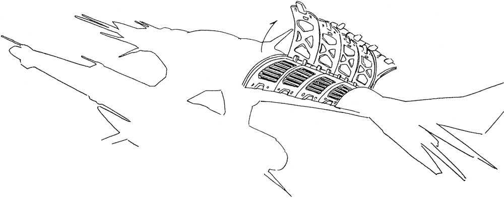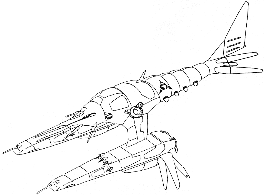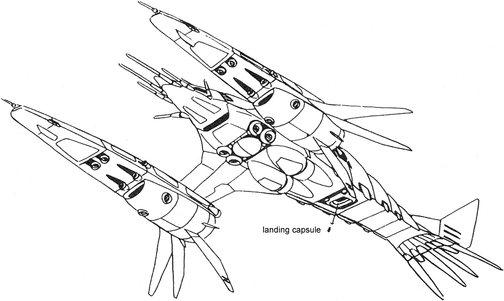 The Caucasus is a 1,800 meter long red battleship used by the Solnoid Central Guard. Several of these arrive in orbit around Chaos to threaten the three survivors of the Star Leaf. The Caucasus has a port on its underside that can release landing capsules to a planet’s surface that each contain a Plunder.
