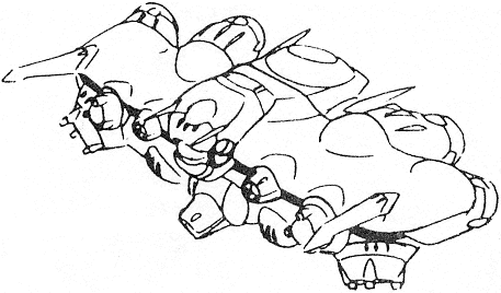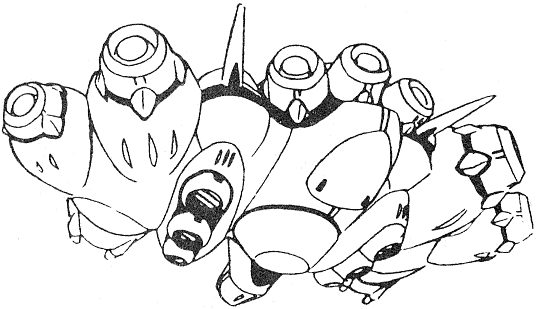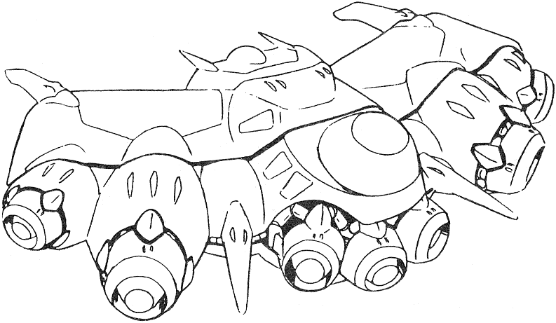 The Damoth is Commander Dohn’s ship and is accompanied by two Raabas. It is one of the smaller Paranoid ships at 80 meters in length and 200 meters in width. The Damoth is armed with large cannons and long range missiles and carries a number of Battle Drones. When all else fails, the Damoth’s shell falls away to reveal the fearsome Dinosaut.