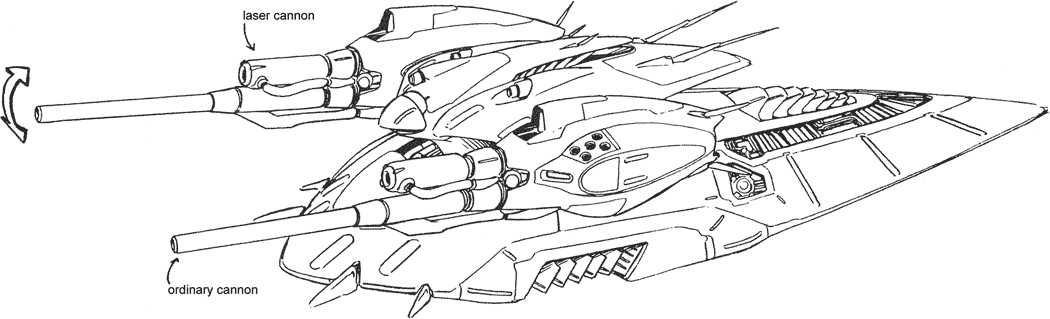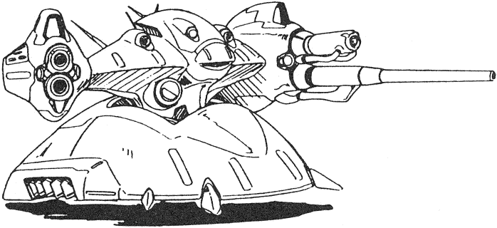 MME Tanks are one of two types of armored assault vehicles used by Gorn’s legions. These large, heavily armed machines are for attacking large and well-protected targets. They are often escorted by squads of Big Heads to protect against human infantry swarming over them.