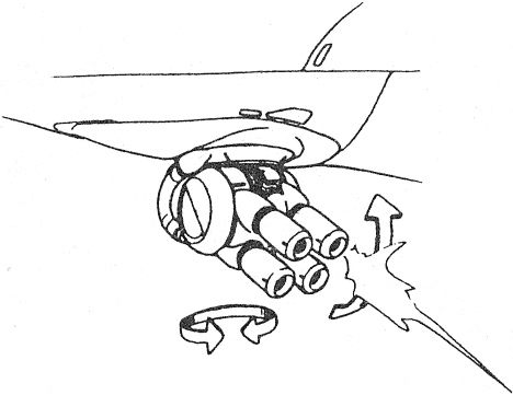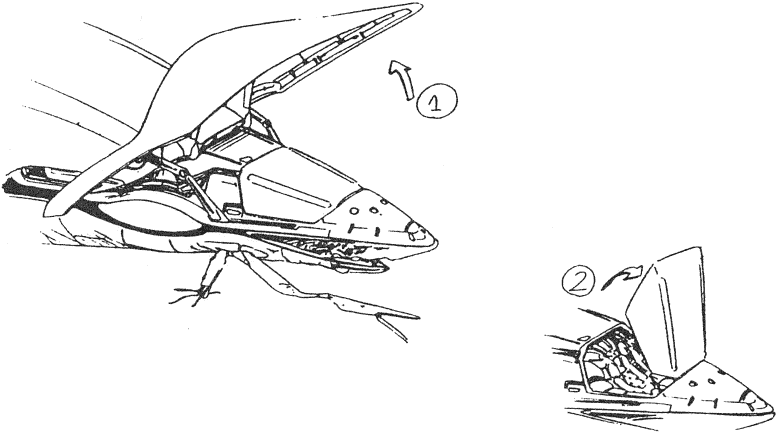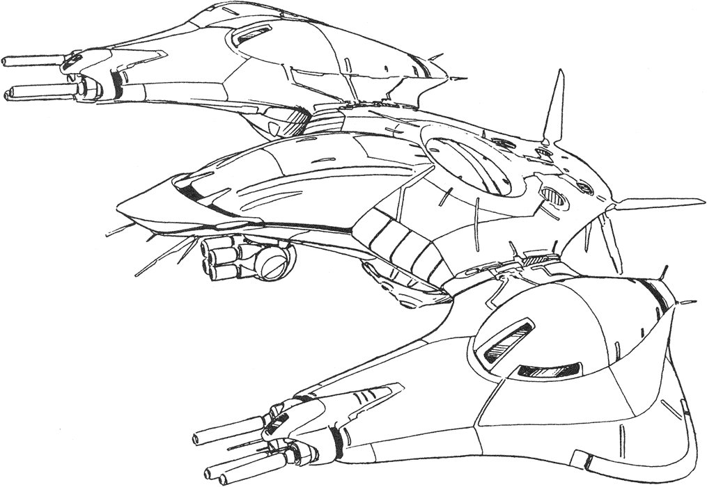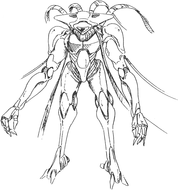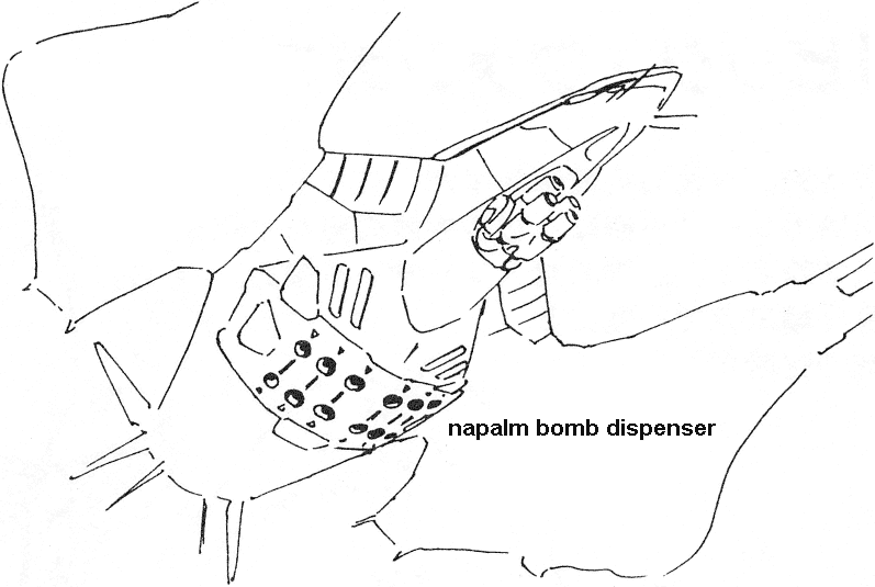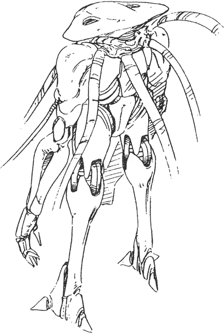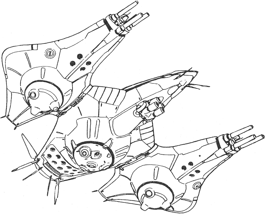 Patrol Machines fly to and fro over cities looking for human survivors to eliminate. Armed with napalm bombs and a four barrel turret it is a formidable opponent. It is capable of VTOL flight and has three high-powered sensor turrets on its underside. They are controlled by two cyberoid pilots that are quite vulnerable if the craft is forced to land.