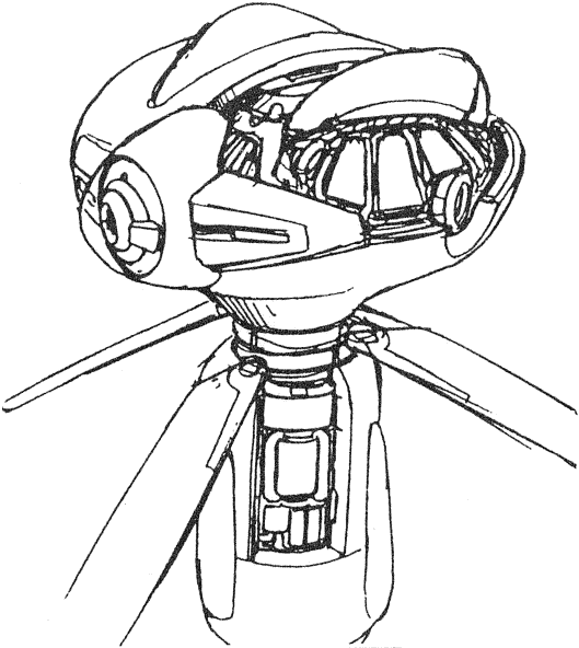 These flying spies send a range of sensory information back to their MME masters. They have hatches that open on their undersides to release and collect spy probes. They are unarmed.