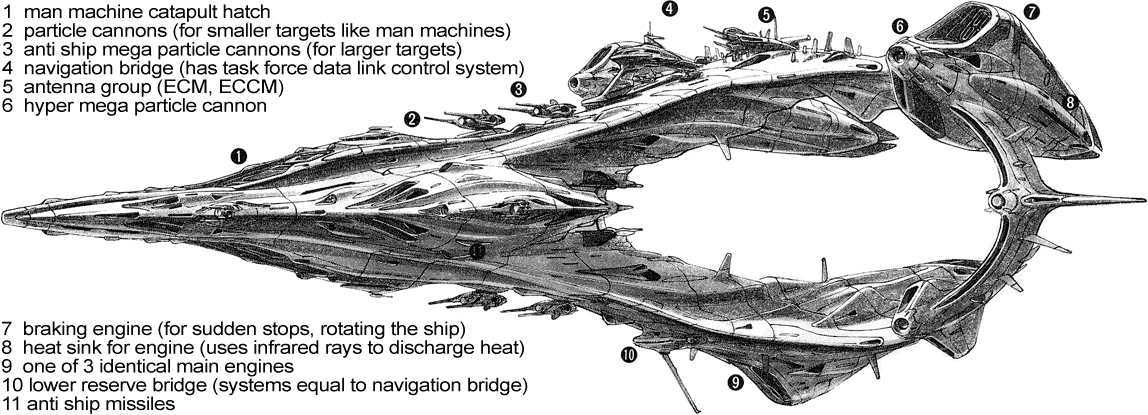 A heavy cruiser used by Metatron capable of carrying man machines.