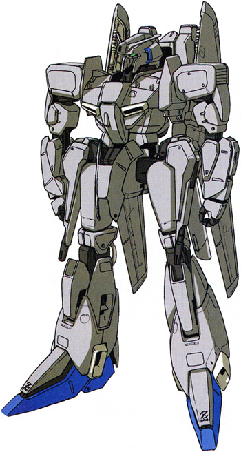 The original MSZ-006A1 Zeta Plus is a mass production version of the MSZ-006 Zeta Gundam, redesigned exclusively for atmospheric use, but its success inspires the AEUG to redesign the Zeta Plus once again so that it can be used in space. This C1 type is equipped with new cooling systems for use in space, its nuclear thermal jet engines are replaced with hybrid jet/rocket engines that can be used in any environment, and it has a backpack containing four additional thrusters. Although it retains the wing binders of the A1 type rather than the flying armor of the prototype Zeta Gundam, this version of the Zeta Plus is capable of performing atmospheric entry with precise calibration.