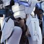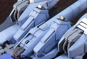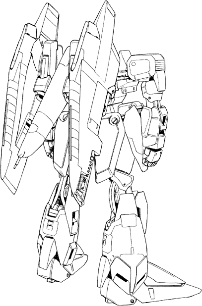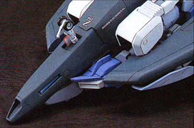The variable geometry wing binders used by the Zeta Plus series are effective in both mobile suit and wave rider forms, and they perform well at low altitudes when the machine is traveling at around the speed of sound. When it comes to hypersonic flight in the upper layers of the atmosphere, however, their performance is inferior to that of the flying armor used by the prototype Zeta Gundam. This C4 type, which is designed for use in the upper atmosphere and low Earth orbit, is equipped with flying armor for better performance in these situations.