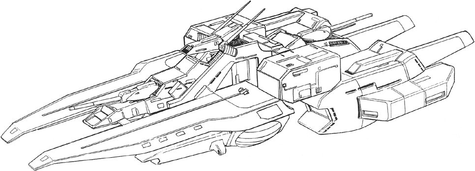 The second space assault cruiser of the Argama class, which serves as the flagship of Taskforce Alpha. The rotating residence blocks of the original Argama are fixed in place, and the radar antennas on the sides of the bridge are replaced with new ones that resemble those of the Pegasus class used during the One Year War. Otherwise, the Pegasus III is essentially unchanged from the original Argama.