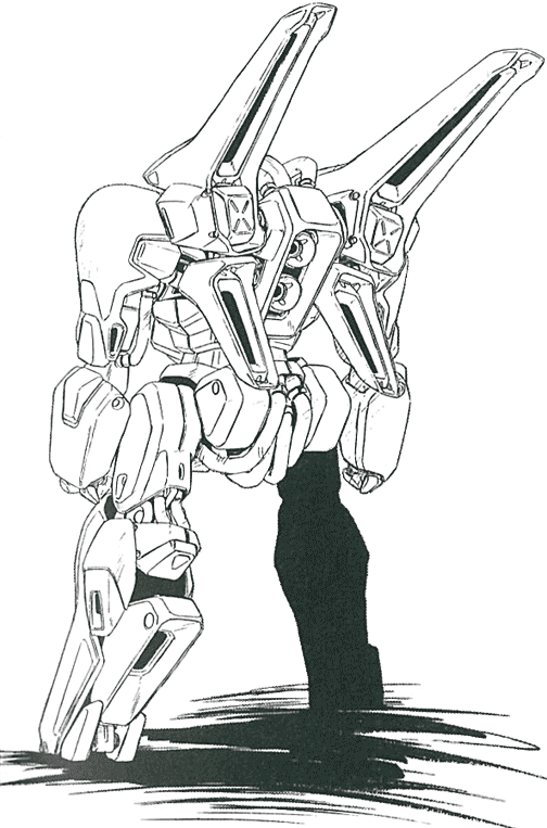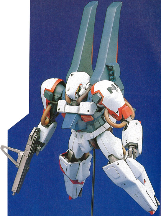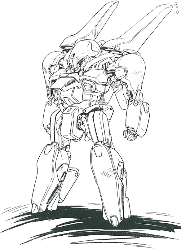 This experimental prototype mobile suit never saw combat. It was the last mobile suit constructed for the SE Project before the Tyrant Sword.
