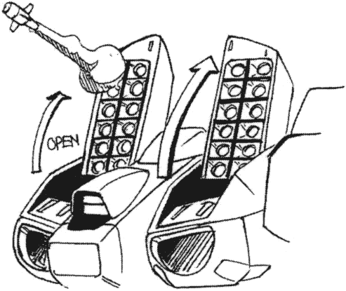The Unmanned Dark Legioss is a specially developed variant of the Dark Legioss that operates without a pilot. Like the Dark Legioss, it cloaks its energy signature and carries a synchro cannon. It is able to maneuver in ways that would be impossible if a person was inside. It also has two large additional missile bays for extra firepower. Each of the large missile bays carries 24 missiles.