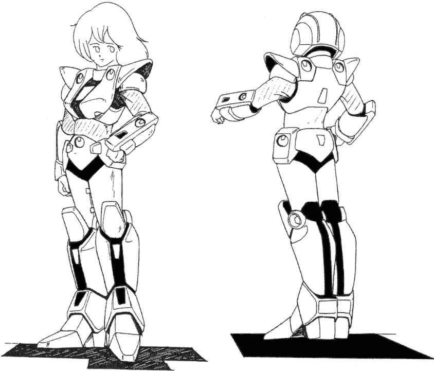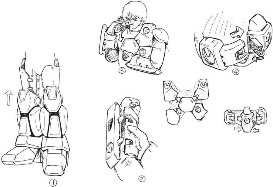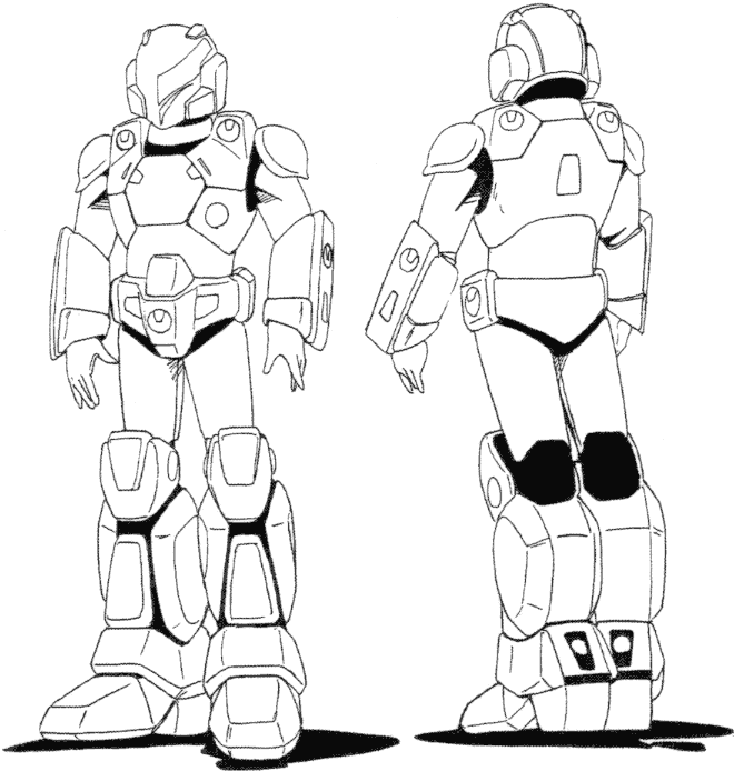 The Riding Suit was developed as a component of the Ride-Armor System. When an armor-bike like the Mospeada or Browsuperior reconfigures to enfold the operator and become a powered armor suit called ride-armor, it needs attachment points to remain firmly in place and prevent injury. The Riding Suit encases the operator and provides those attachment points. The Riding Suit isn’t one piece of clothing but rather an armored suit that is put on in pieces. Riding Suits protect their users so well that even ground troops that do not intend to use ride-armor are assigned Riding Suits for combat.