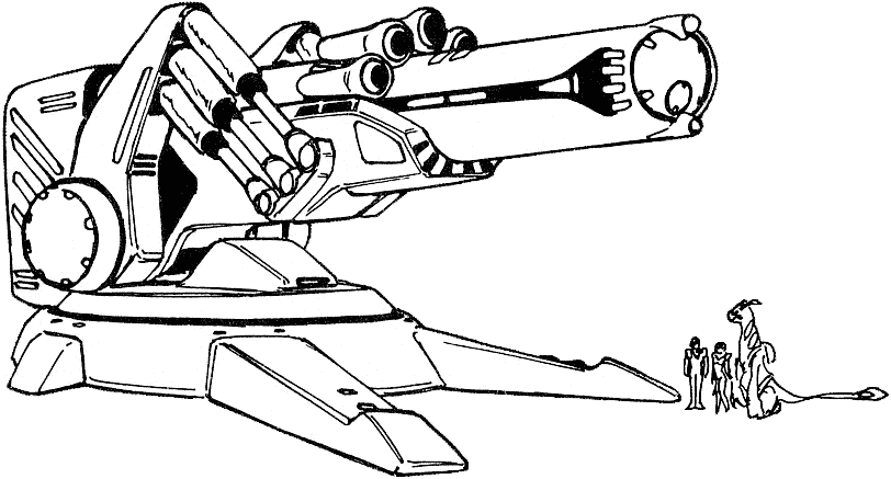 The Demolisher Cannon was rented to Queen Mary Anne Towant’s kingdom by the crew of the Glomar as a mining tool but in episode 9 the Glomar is passing through town and sees that the queen has broken the terms of the rental agreement by threatening the dissidents in her kingdom with it. The Glomar’s crew steal the cannon back and mount it on the Glomar. The powerful energy cannon is a big help to them as they try to evade Chiram forces.