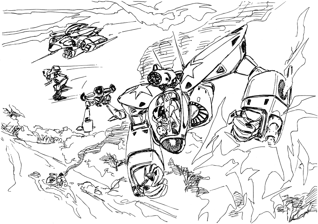 The M.Lover is a hybrid mecha fighter used by the Emaan. The Glomar has 2 M.Lovers onboard; one piloted by Leeah and the other by Maai. Maai’s M.Lover is a standard model while Leeah’s is a heavy weapons type. The M.Lover is 6.59 meters long and has a standard weight of 2.42 tons (Leeah’s weighs 3.05 tons).