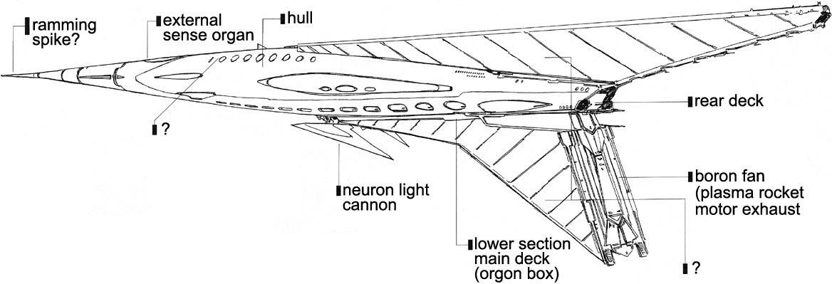 Gene liners are large, high-tech ships capable of traveling long distances. The main characters of Schell Bullet travel aboard the Rogne Balt while their chief rivals travel on the Belter Gees.