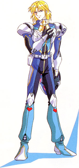 A test pilot for the SRX team, he’s a member of the Branstein family, a distinguished military family. While testing the RTX-008R Huckebein prototype, the Black Hole Engine malfunctioned, and he lost his left hand. Smart, sarcastic, and cool under pressure, he’s reportedly a genius. He’s 19 years old and a Second Lieutenant.